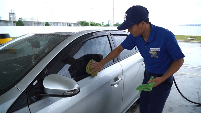 Nhân viên lâu xe miên phí cho khách hàng.